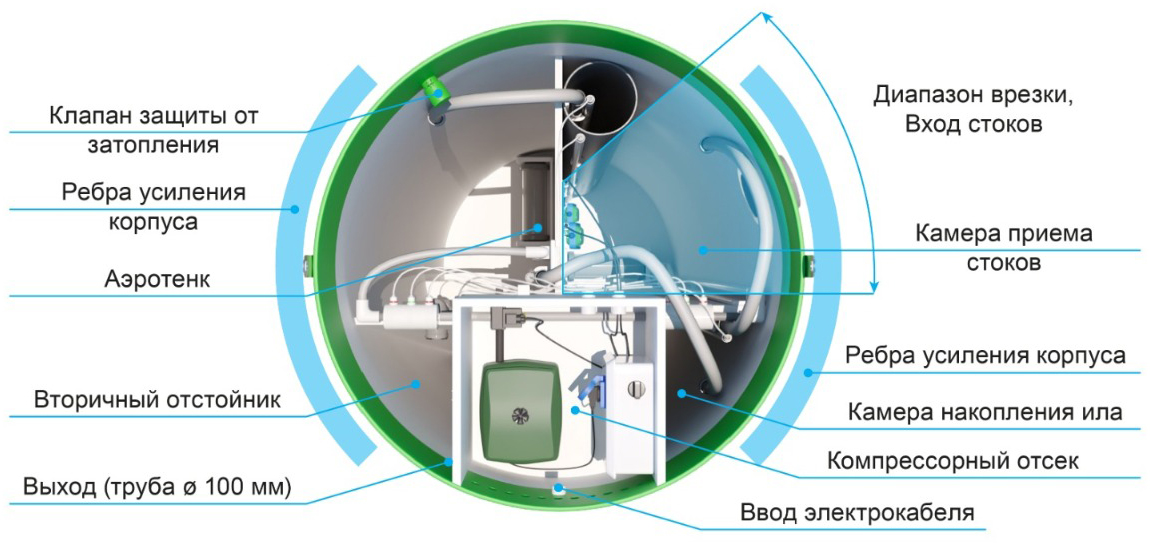 Автономная канализация ТОПОЛЬ 4 — это современная станция глубокой биологической очистки (СГБО) отечественного производства, обеспечивающая высочайший уровень экологического комфорта для домохозяйств с постоянным проживанием 3-4 человек.